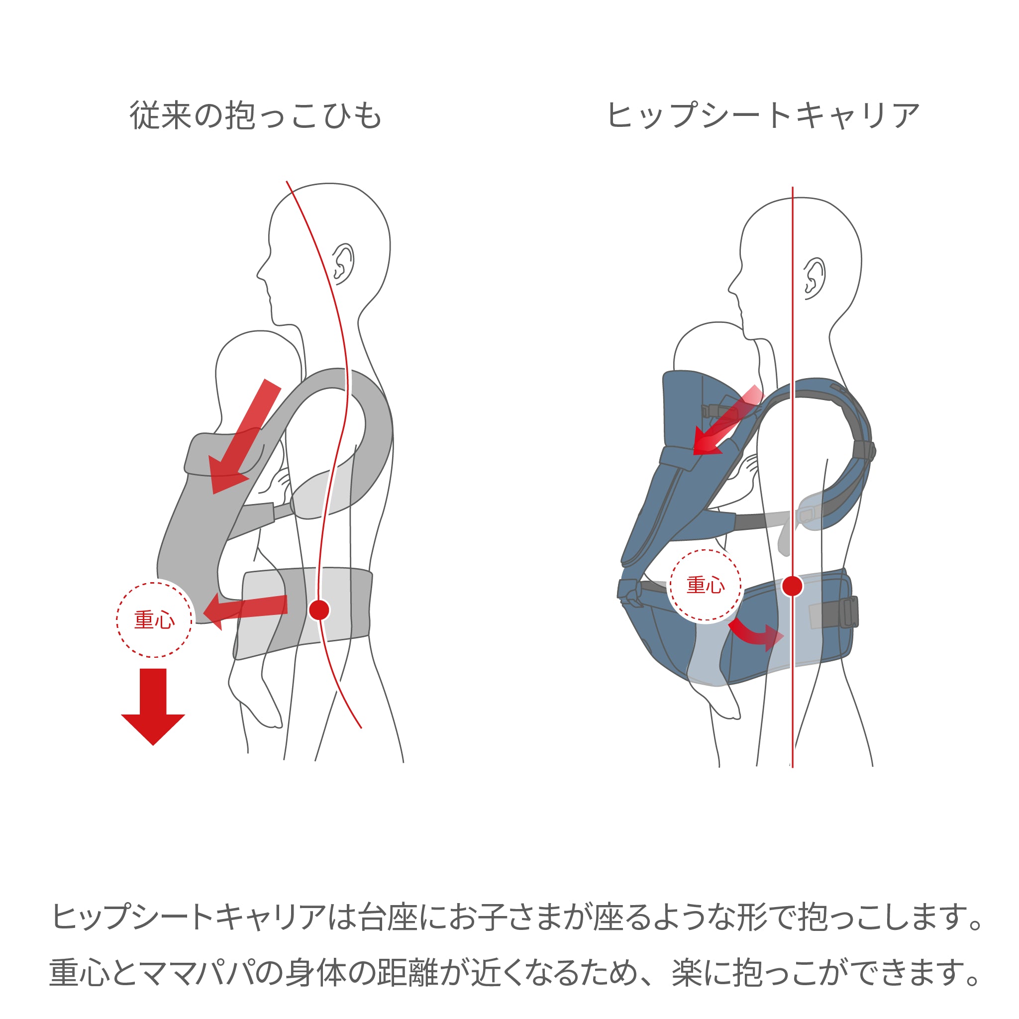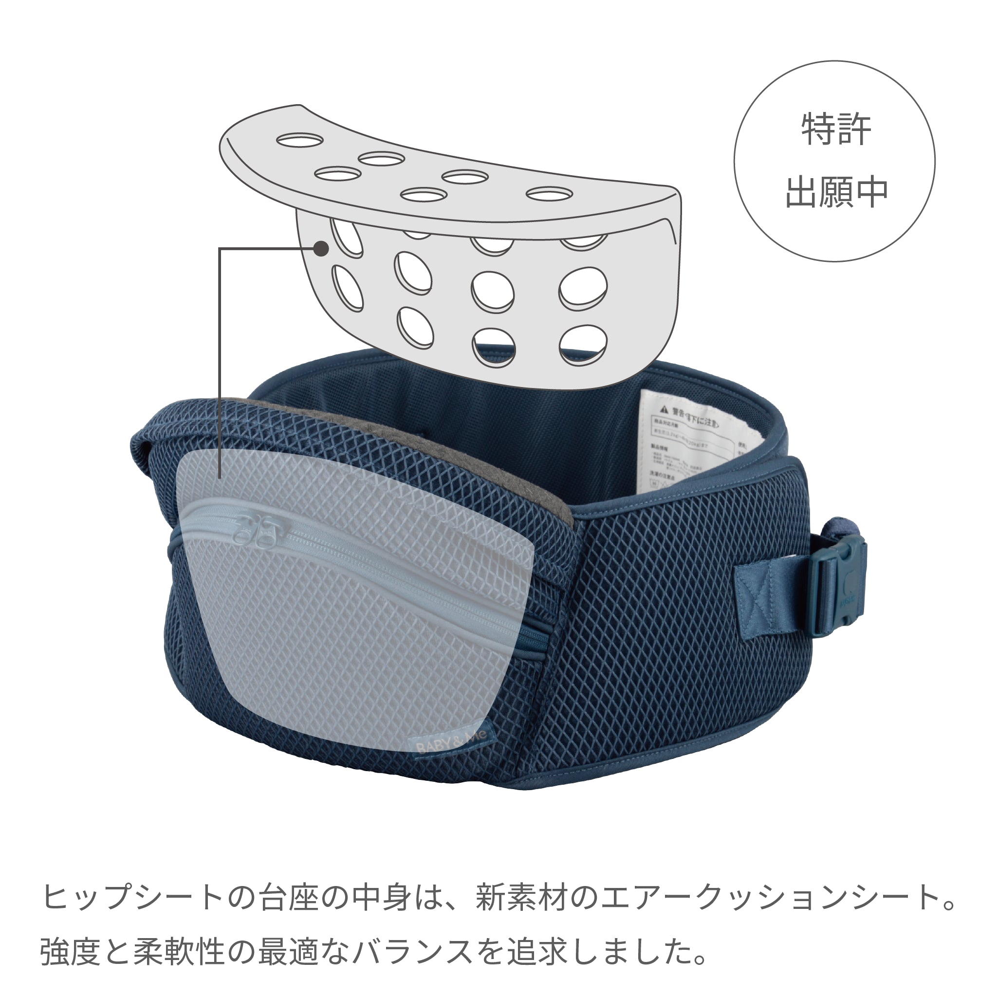 精巧的底座支撐寶寶的體重,減輕肩部和腰部負擔高達 24% (※根據與大阪公立大學的共同研究)
